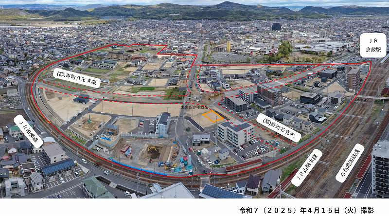 | 備考 | 建築条件なし、公営水道・公共下水(宅内引込みは買主負担)、倉敷駅周辺第二土地区画整理地内・使用収益開始済み、土地区画整理法第76条許可要、北東側都市計画道路予定(幅員17mの予定・現在の舗装は5m)は令和9~11年度頃の工事予定、換地処分は令和13年頃の予定(売買時の登記は従前地になります)、面積は予定であり換地処分後清算金あり、現況渡し |