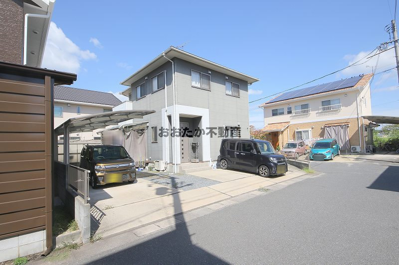■駐車場は、3~4台駐車可能(屋根付きカーポートは2台分)。屋外収納(イナバ物置)がある、アウトドア用品などの収納に便利です。