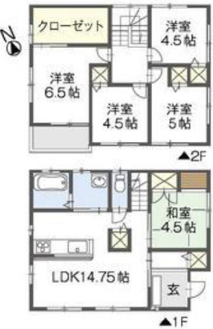 | 間取詳細 | LDK14.75,和4.5,洋4.5,洋5,洋4.5,洋6.5,WIC |