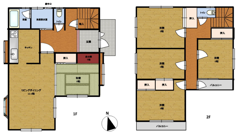 | 間取詳細 | LDK12.6,和6,洋8,洋6,洋6,洋6 |