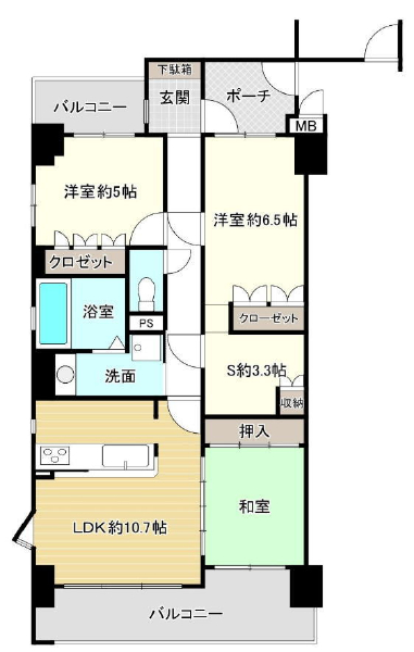 | 間取詳細 | LDK10.7,和6,洋5,洋6.5,S3.3 |