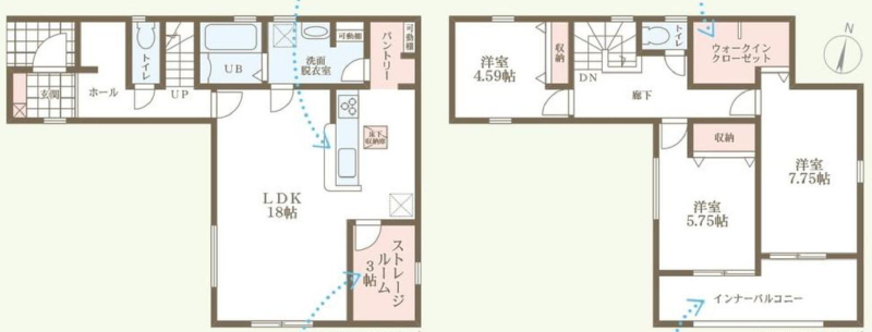 | 間取詳細 | LDK18,S3,洋5.75,洋7.75,洋4.59 |