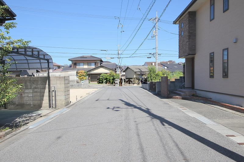 ■北西角地、開放感があり、幹線道路にも出やすい立地。低層住居地域なので周辺に高い建物は建ちません。