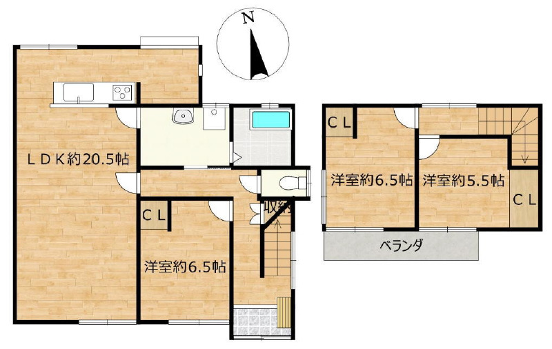 | 間取詳細 | LDK20.5,洋6.5,洋6.5,洋5.5 |