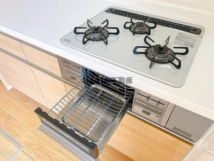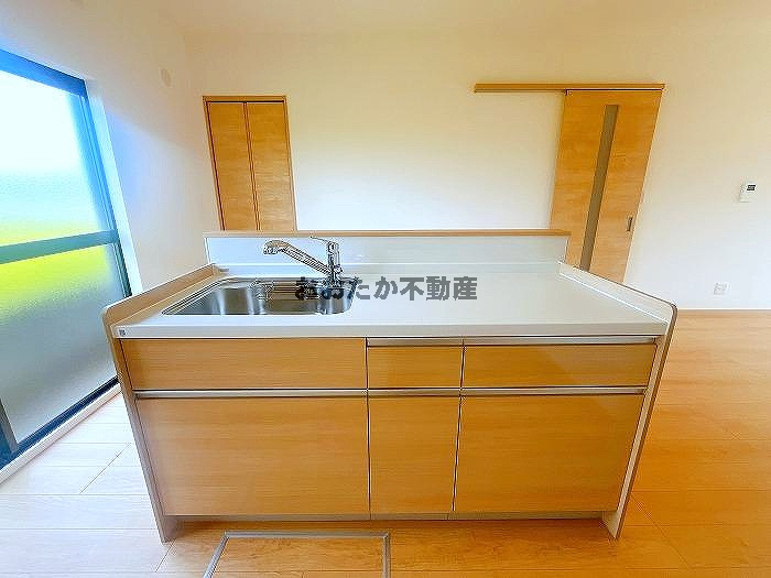 ■玄関入って左側には、リビングが見渡せる15帖のLDK。シンクとコンロを別々のカウンターに分けて平行に配置したセパレートキッチンを採用。充実した収納スペースと自由度の高いデザイン性で、お部屋をより広く見せることができますね。開放的な空間は自然と家族が集まり、会話も弾みます♪♪玄関ホール右側には、サービスルームを備えた8帖の洋室。