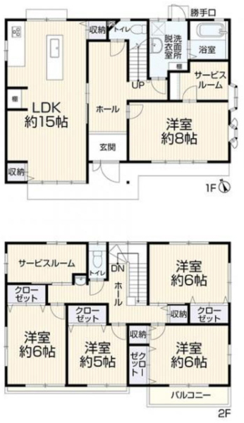 | 間取詳細 | LDK15,洋8,S,洋6,洋5,洋6,洋6,S |