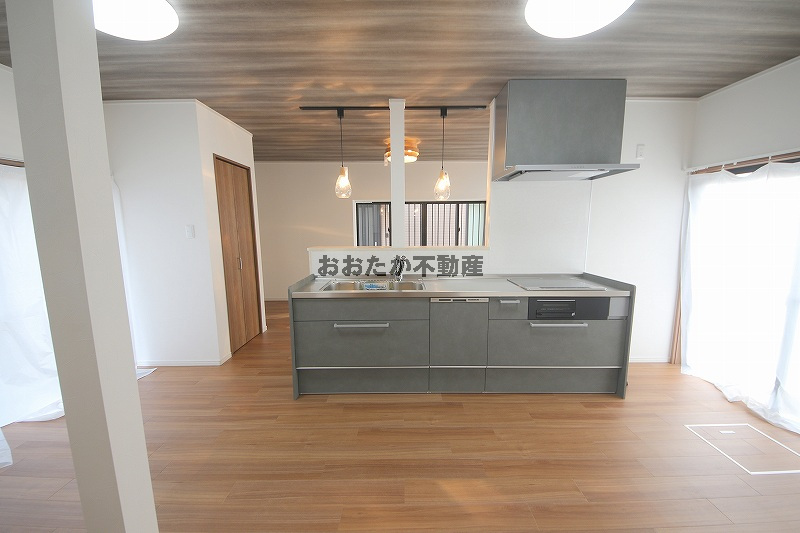 ■1階には、水回りと開放感のある17帖のLDK。対面式のシステムキッチンは、家族と会話をしながらお料理が作れます。IHクッキングヒーターや食洗機完備で効率よく家事がこなせますね。南向きの明るい空間に自然と家族が集まり、会話も弾みます。