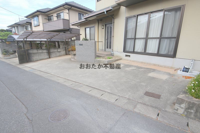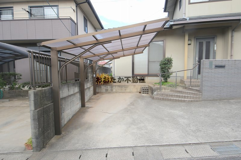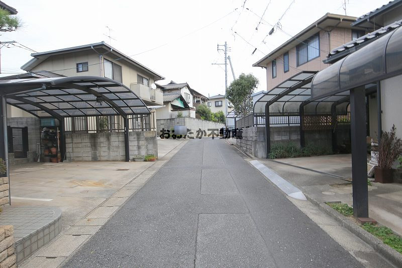 ■前面道路幅は4m。駐車場は屋根付きカーポートが1台分あります。
