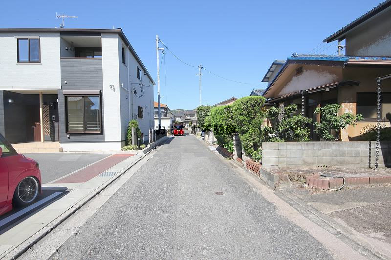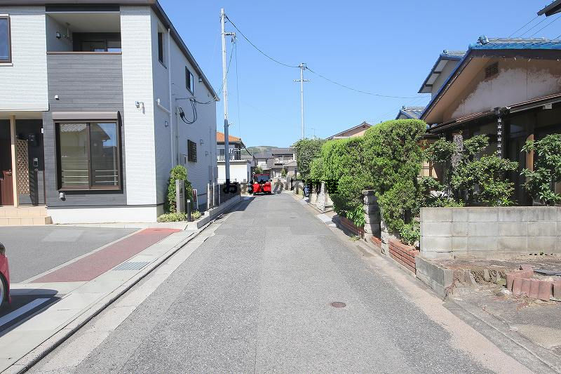 ■現地は、幹線道路から少し入った静かな環境。前面道路は行き止まりの生活道路なので、交通量も少なく、安全。お車の出し入れも焦らずに行えますね。