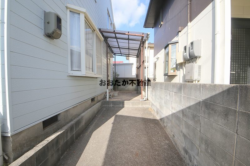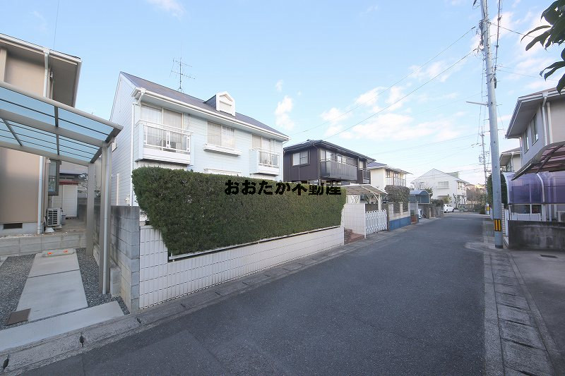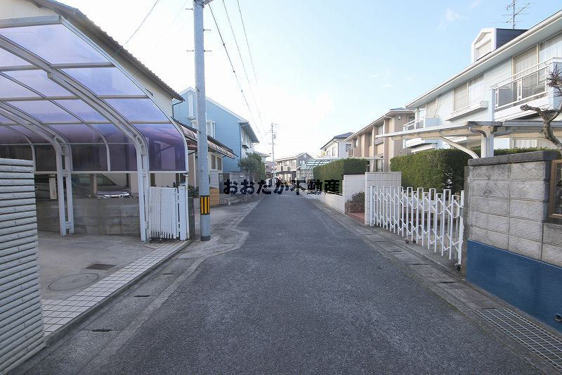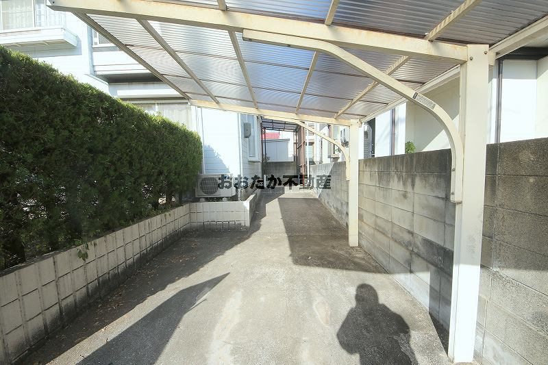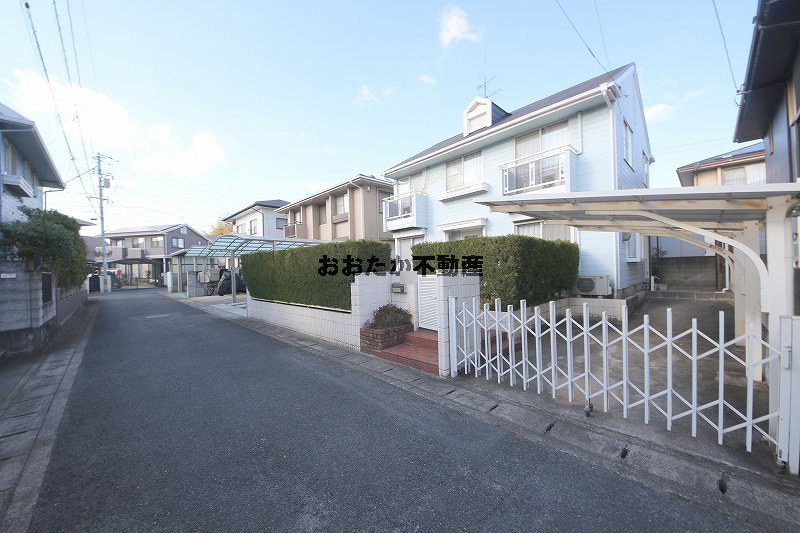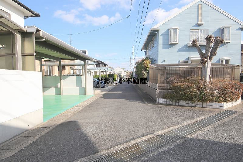 ■前面道路は幅員4m、交通量もそう多くないので、車の出し入れも問題ありません。駐車場は、縦列で2台(車種による)駐車可能です。