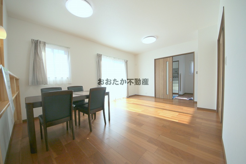 | 備考 | 新築オール電化住宅(食洗機・家電収納付きカップボード・TOTOウォシュレット・TVモニター付きドアホン・複層Low-Eガラス・照明器具・カーテン標準装備)、バリアフリー、公営水道、公共下水 |