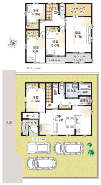 | 間取詳細 | LDK16.7,洋5.6,家事室,洋6,洋5.6,洋4.3,洋11,WIC |