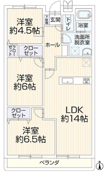 | 間取詳細 | LDK14,洋6.5,洋6,洋4.5 |