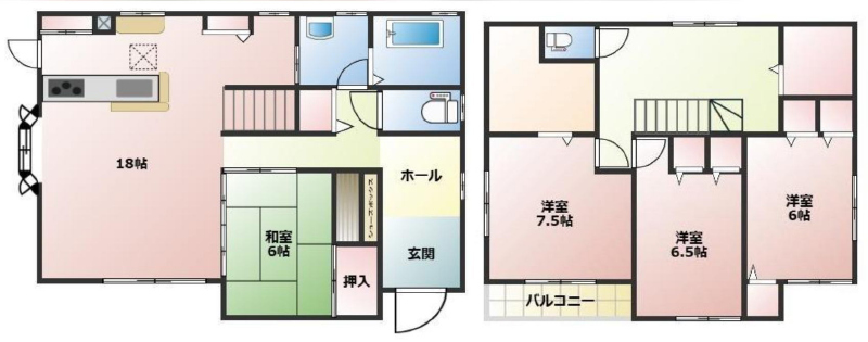 | 間取詳細 | LDK18,和6,洋7.5,洋6.5,洋6,WIC |