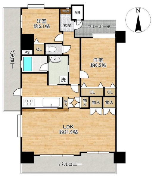 | 間取詳細 | LDK21.9,洋6.5,洋5.1 |