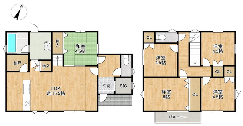 | 間取詳細 | LDK15.5,和4.5,洋4.5,洋6,洋4.5,洋4.5 |