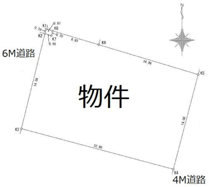 | 接道 | 西 6m(幅員) 公道 14m(接面) 東 4m(幅員) 公道 14m(接面) |