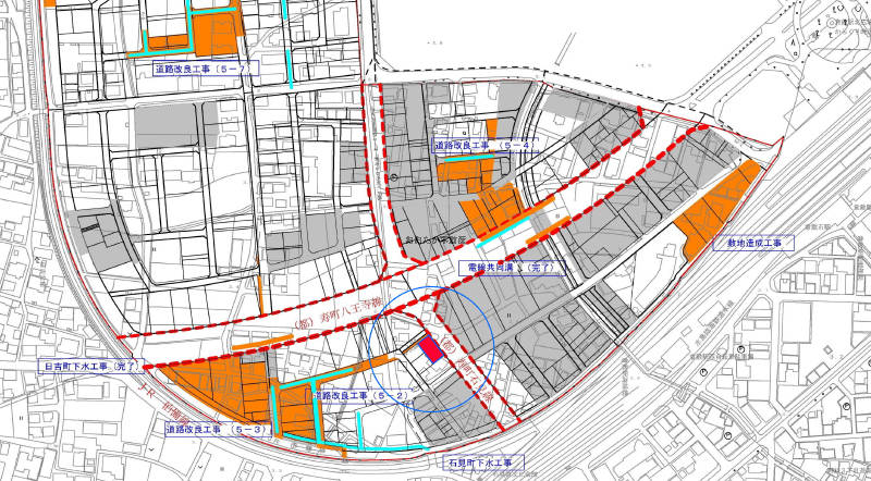 ■現在施工中の「倉敷駅周辺第二区画整理」地内に位置し、完成後は前面が幅員17mの計画道路に面する予定です。