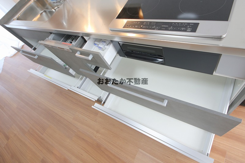 ■1階には、水回りと開放感のある17帖のLDK。対面式のシステムキッチンは、家族と会話をしながらお料理が作れます。IHクッキングヒーターや食洗機完備で効率よく家事がこなせますね。南向きの明るい空間に自然と家族が集まり、会話も弾みます。