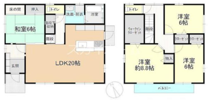 ■1階の南向きの日当たりの良いLDKは圧巻の20帖!!のんびりした時間が流れ、家族が自然と集まる場所。6帖の和室は、寝転んでくつろげますね。小さなお子様のプレイルームにも♪♪