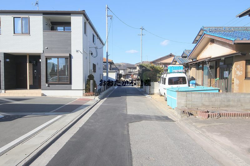 ■現地は、幹線道路から少し入った静かな環境。前面道路は行き止まりの生活道路なので、交通量も少なく、安全。お車の出し入れも焦らずに行えますね。