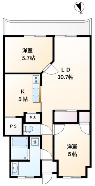 ■LDK以外に居室が2部屋。南側に5.7帖、北側に6帖。どちらもフローリングの洋室です。