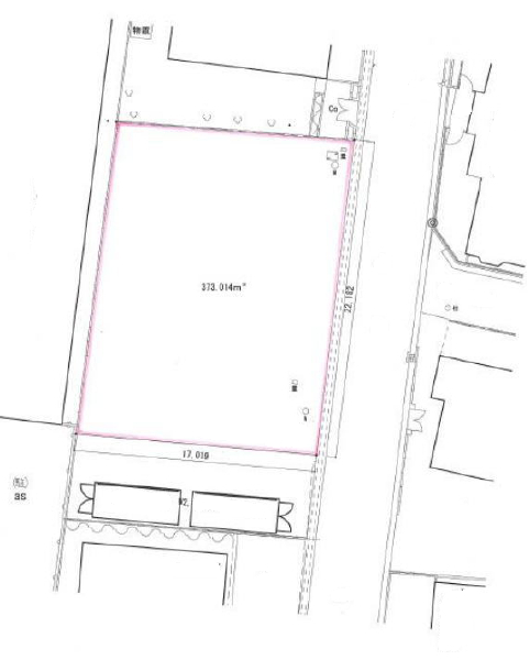 ■北浜交差点にほど近い、まとまった広さの112坪の売土地です。幹線道路から1本なかに入った静かな立地です。