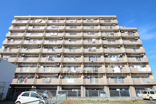 ■岡山や倉敷への通勤通学にも便利な水島臨海鉄道福井駅まで徒歩9分の650m、産業道路(水島港線)沿いに建つ54世帯が入居する9階建てのマンションです。