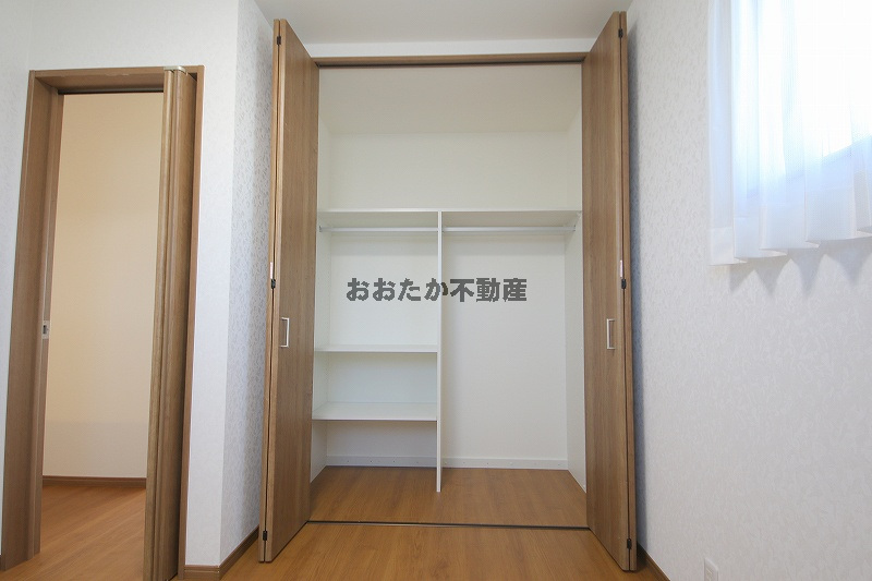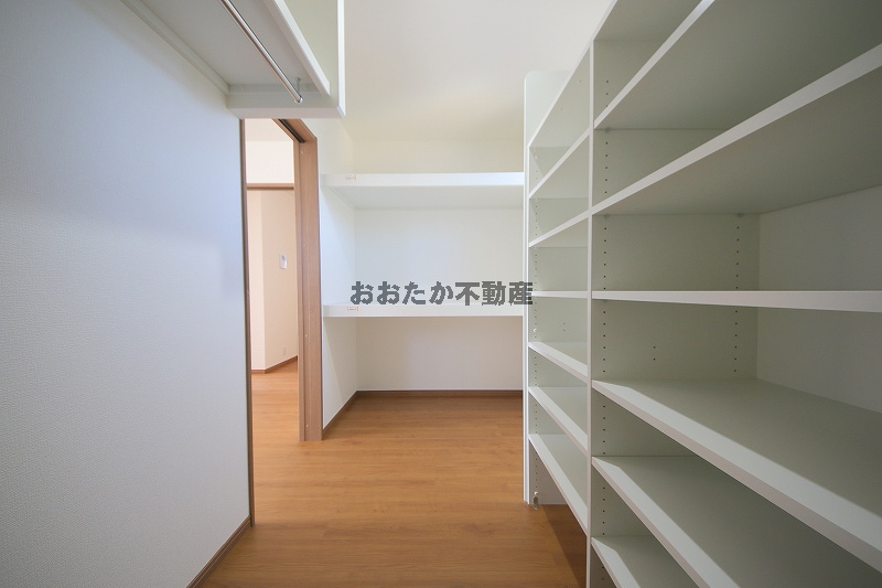 ■1階には、他に独立した5.6帖の洋室があります。備え付けの収納棚は、間仕切りの位置や棚板の移動も自由自在。生活空間をスッキリ整えます。