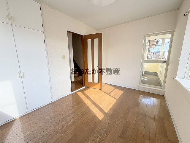 ■家族の帰宅がわかるリビング階段を上がると、中2階には6帖の個室が3部屋。全室収納完備で、生活空間をすっきり整えます。お風呂と洗面台はこの階にあります。