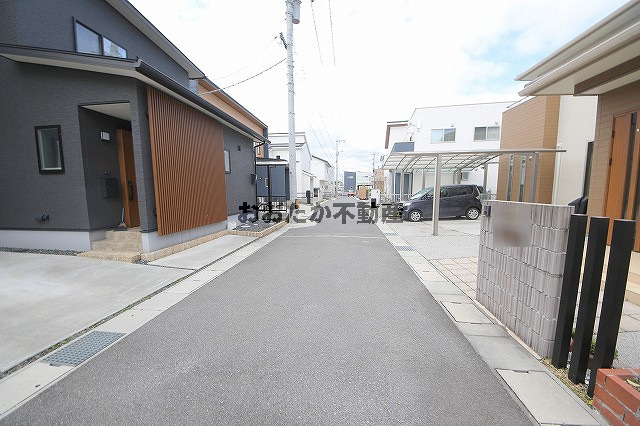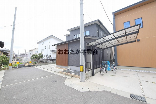オール電化住宅、太陽光発電システム搭載(3.94KW)、公営水道、省エネ給湯器・エコキュート、キッチン床暖房、ウォークスルークローゼット(1階)、宅配ボックス、現況有姿渡し、私道持分1/19あり(面積:98㎡) |