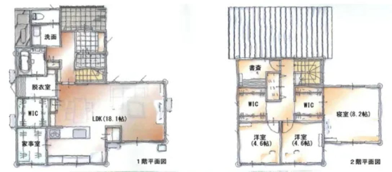LDK18.1,家事室,WIC,書斎2.5,洋4.6,洋4.6,洋8.2,2WIC |